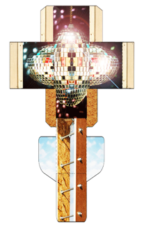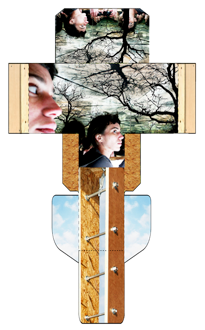 Le positionnement de 3 miroirs face à face nous permet d'obtenir un reflet à l’infini à l'intérieur de la boîte. Collés sur les miroirs des éléments photographiques viennent compléter le piège optique mis en place.