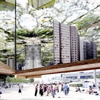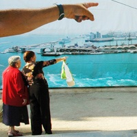 Les installations photographiques de Julie Guiches jouent avec les spectateurs que nous sommes. Pourtant au premier coup d’oeil, rien d’ambivalent, on aperçoit un paysage urbain, quelques passants, un chantier…