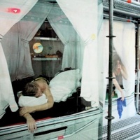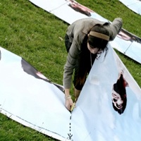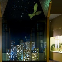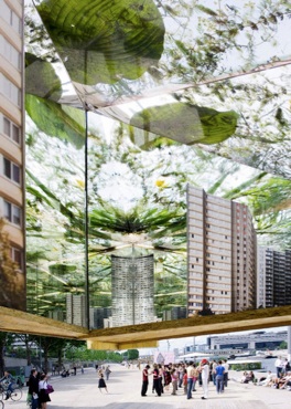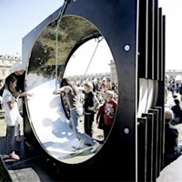 Ces poupées russes photographiques questionnent notre perception de la ville, nos déplacements, l’usage que nous en faisons et les relations que nous y entretenons. Sans imposer de solution, Julie Guiches propose toujours un espace intermédiaire, dans lequel la poésie et l’humour ont toute leur place : ainsi cette installation qui d’un côté montre une perspective dans un parc et de l’autre, qui propose aux joggeurs de tourner tel des rongeur en cage tout en voyant du sol au plafond un ciel bleu défiler.