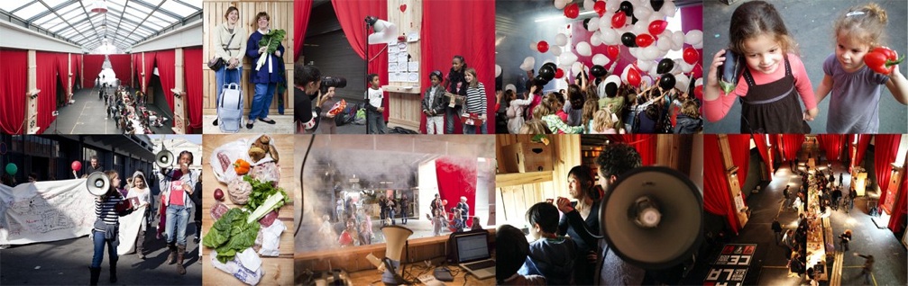 Parce que les enfants sont importants, nous les invitons un mercredi après-midi à s'amuser et se faire plaisir dans leur palace ! Au menu, un tas d'activités dont des ateliers créatifs organisés par Elise Mériau , l’organisation d’une manif avec Loreto Martinez, la construction de mini-palaces en récup, de masques plein de paillettes, d'instruments de musique pour faire du boucan... Ils se font aussi grimer par le performeur de body-painting Mattia Paco Rizzi, customiser leur tshirt par Laeticia Cordier, se font photographier tout beaux dans le studio-photo mobile, éclatent les ballons et chauffent le dance-floor interdit aux adultes, trempent des morceaux de fruits dans des fontaines de chocolat, nous laissent des tas de dessins au sol, de mots au mur, de cris qui résonnent.