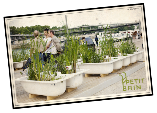 Les passants sont invités à poser dans les baignoires végétalisées de la terrasse de Petit Bain.