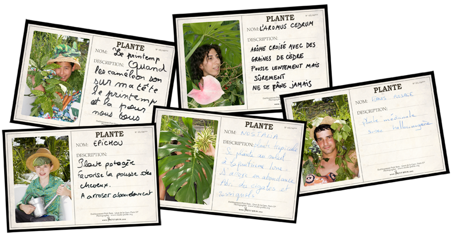 Après avoir choisis les végétaux qui leurs correspondent le mieux, ils sont invités à créer le nom d’une plante qui leur serait associée, ce à l’aide d’un petit lexique de botanique.